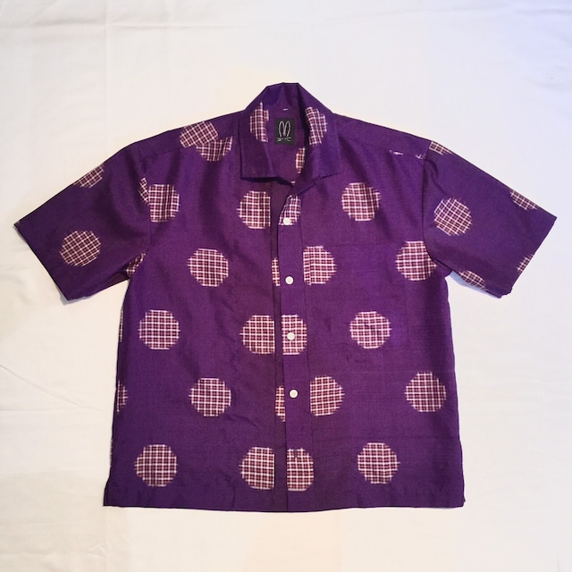 うさぎや工房 銘仙アロハシャツ 紫にチェック水玉