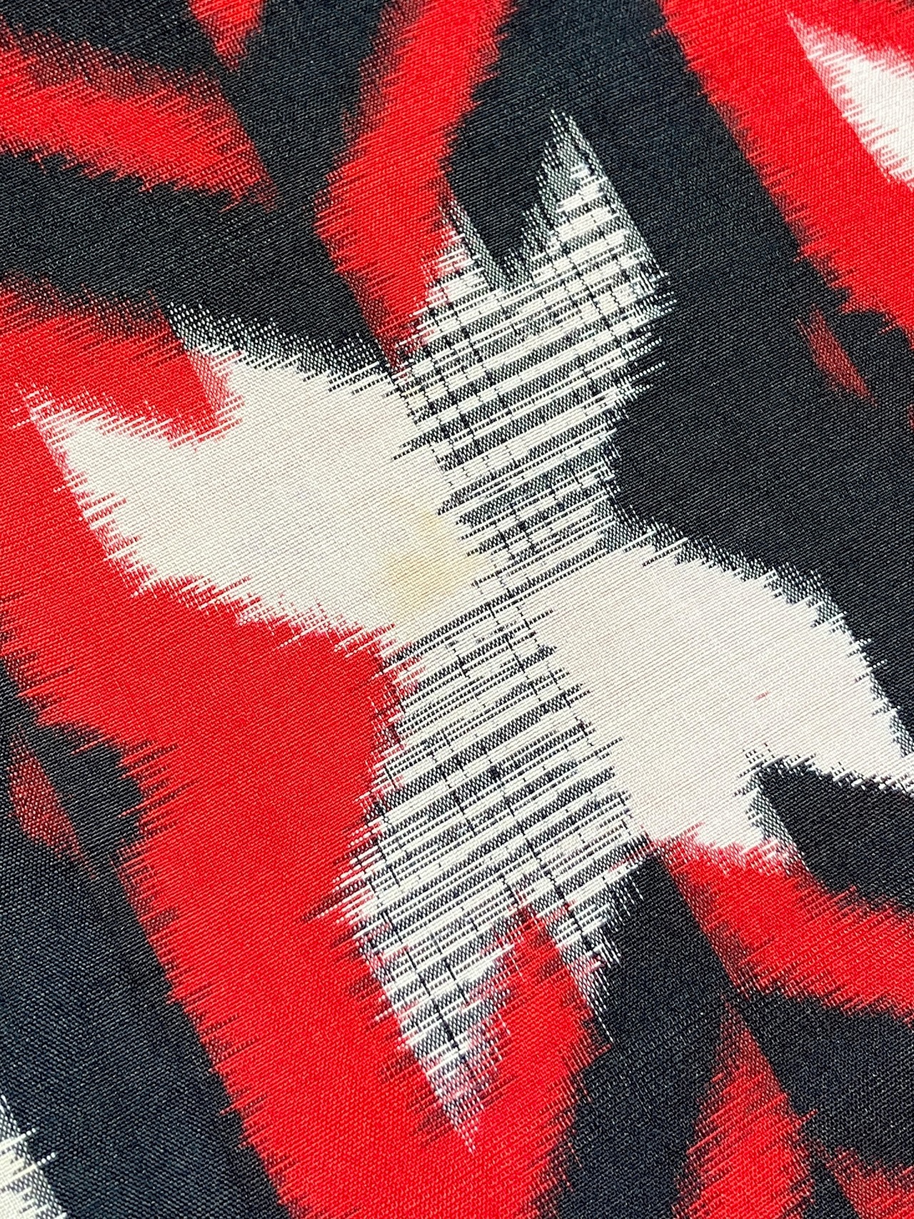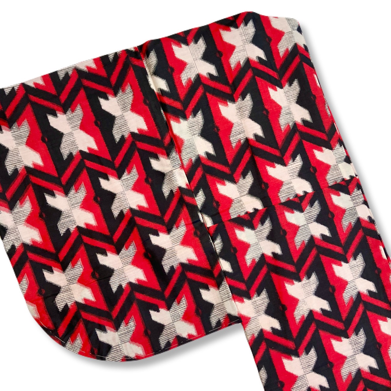 銘仙 袷 赤黒白 モダンパターン