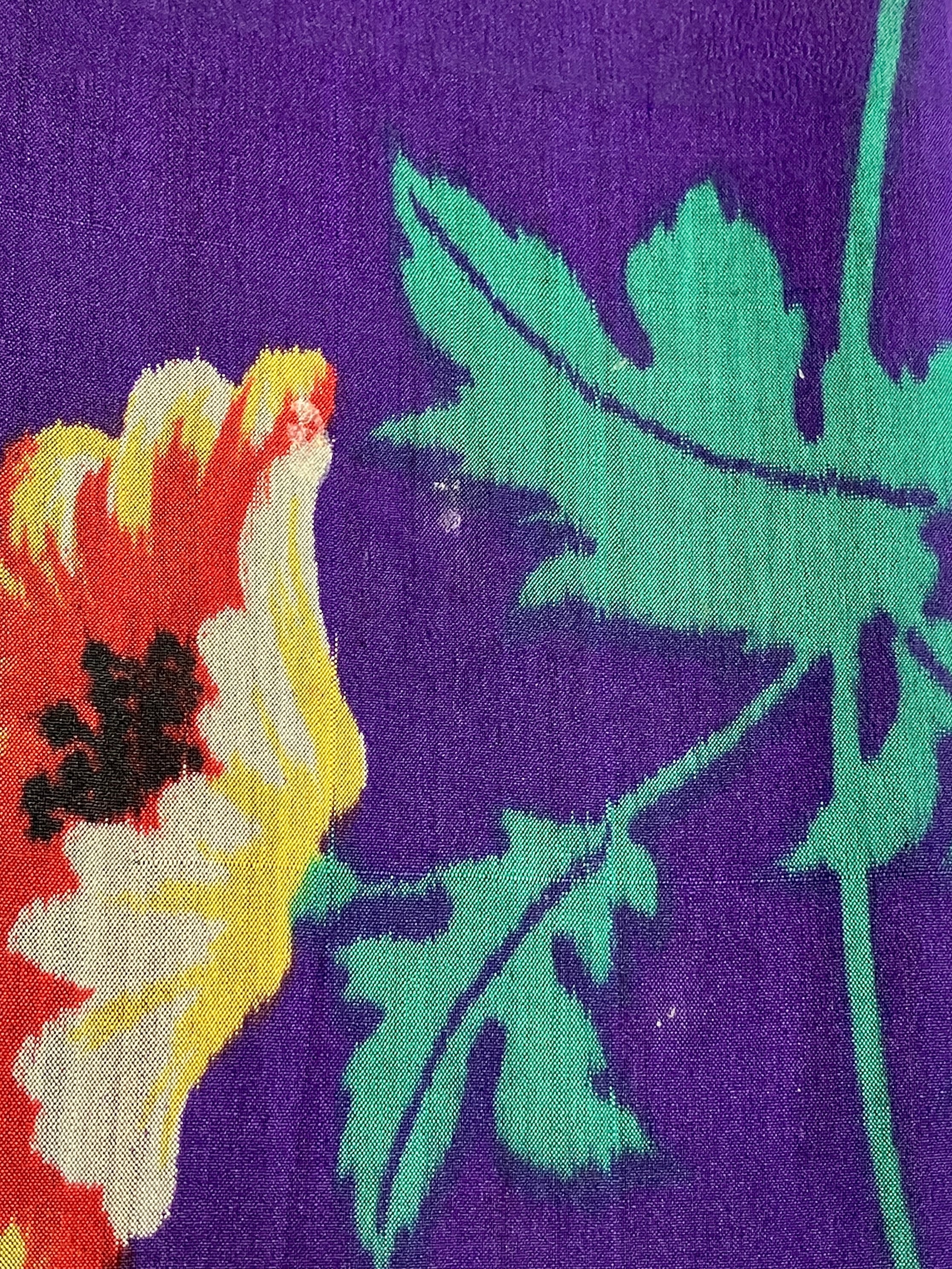 薄手で柔らかく落ち感もあり、部分的に入る明るい横糸により柄に動きが出る半併用銘仙です。