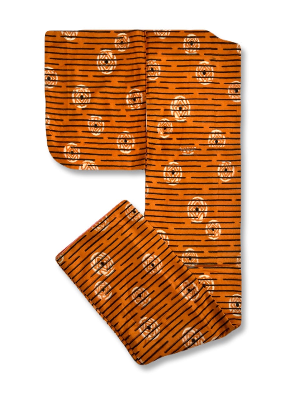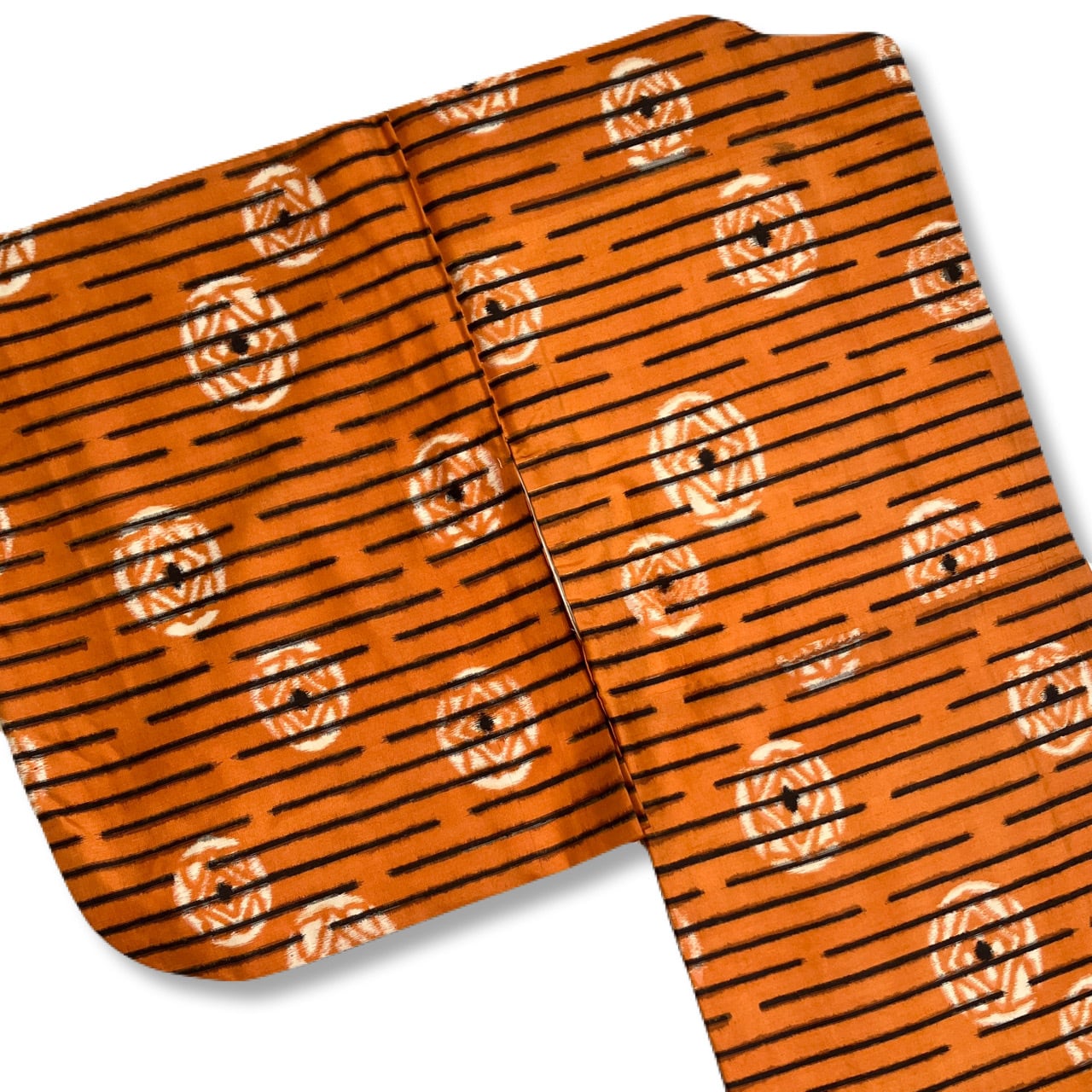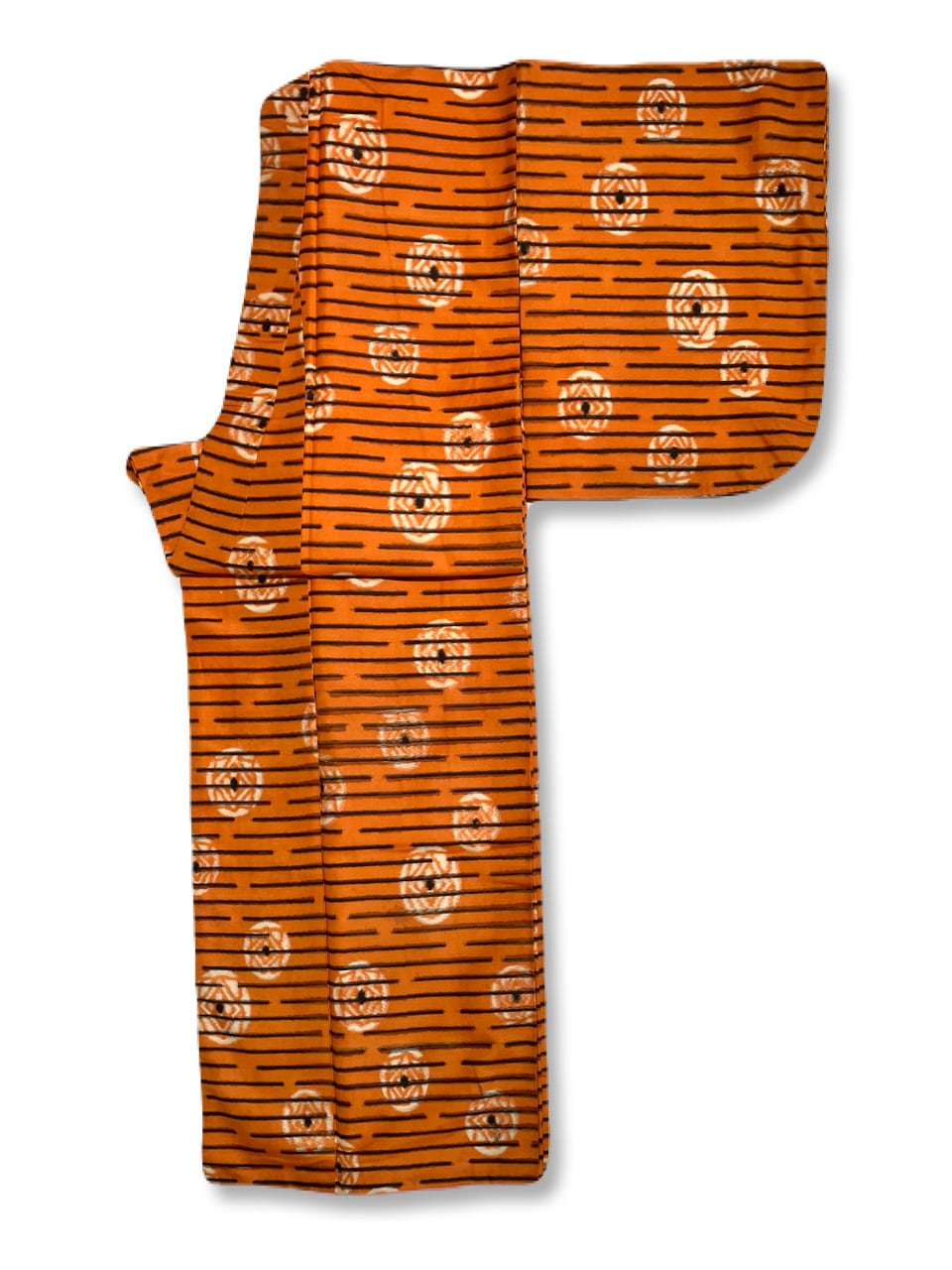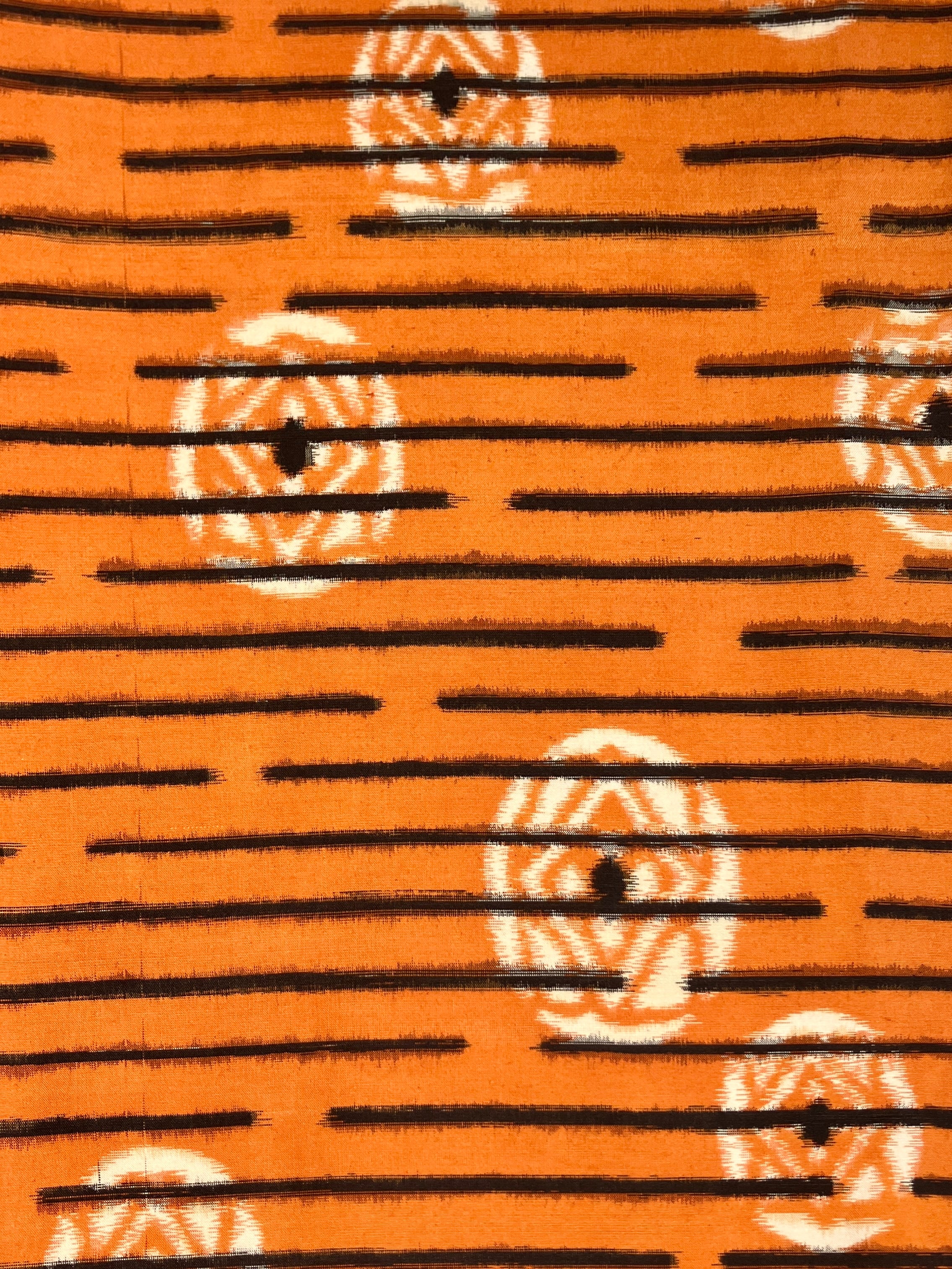 濃いオレンジ色の地に虎のような黒い横縞と白い楕円の柄