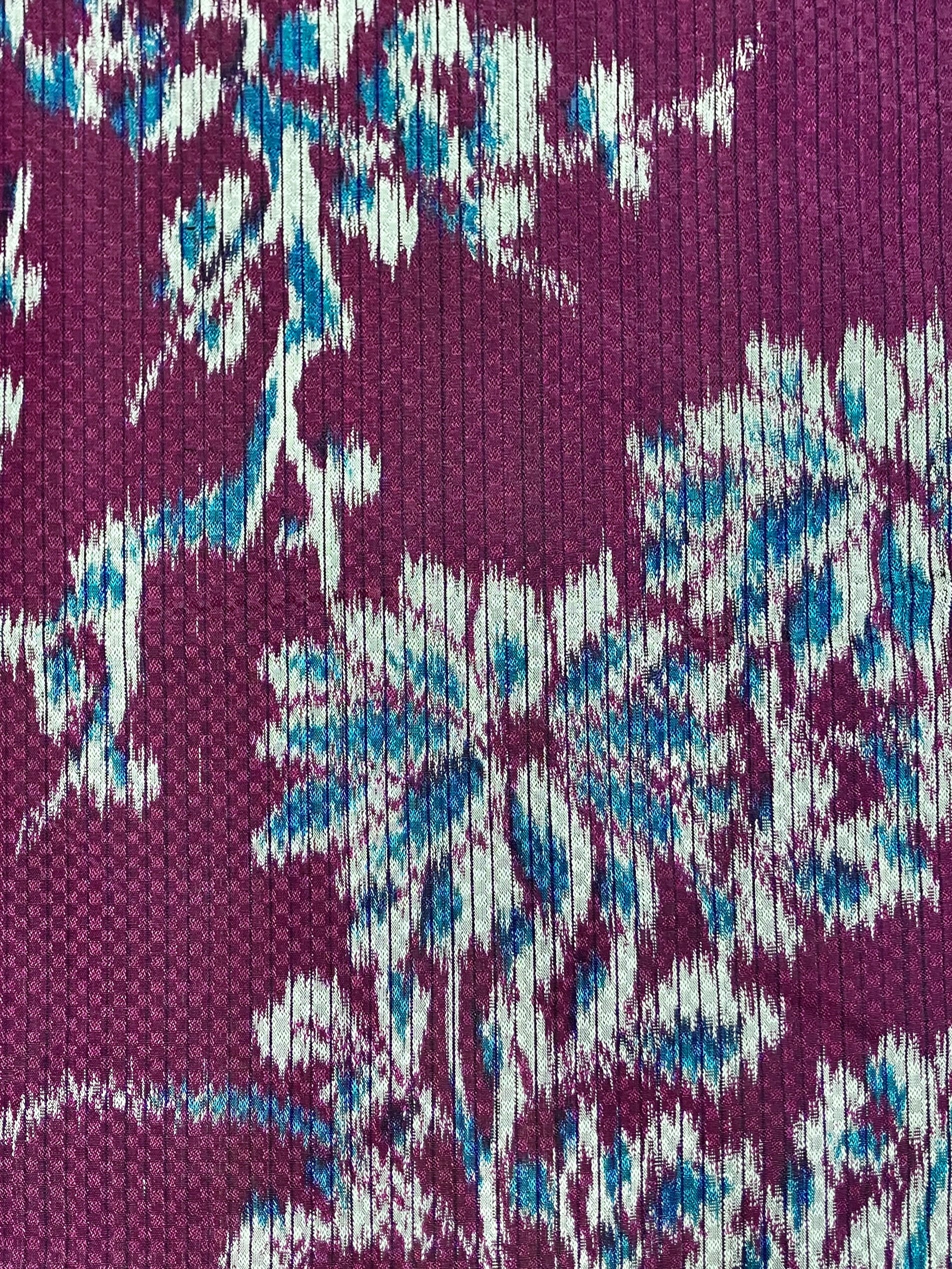 ほぼ平織りの銘仙の中で唯一織りが違い、主に市松状の織柄があり、生地にやや厚みがあるカピタン織銘仙です。