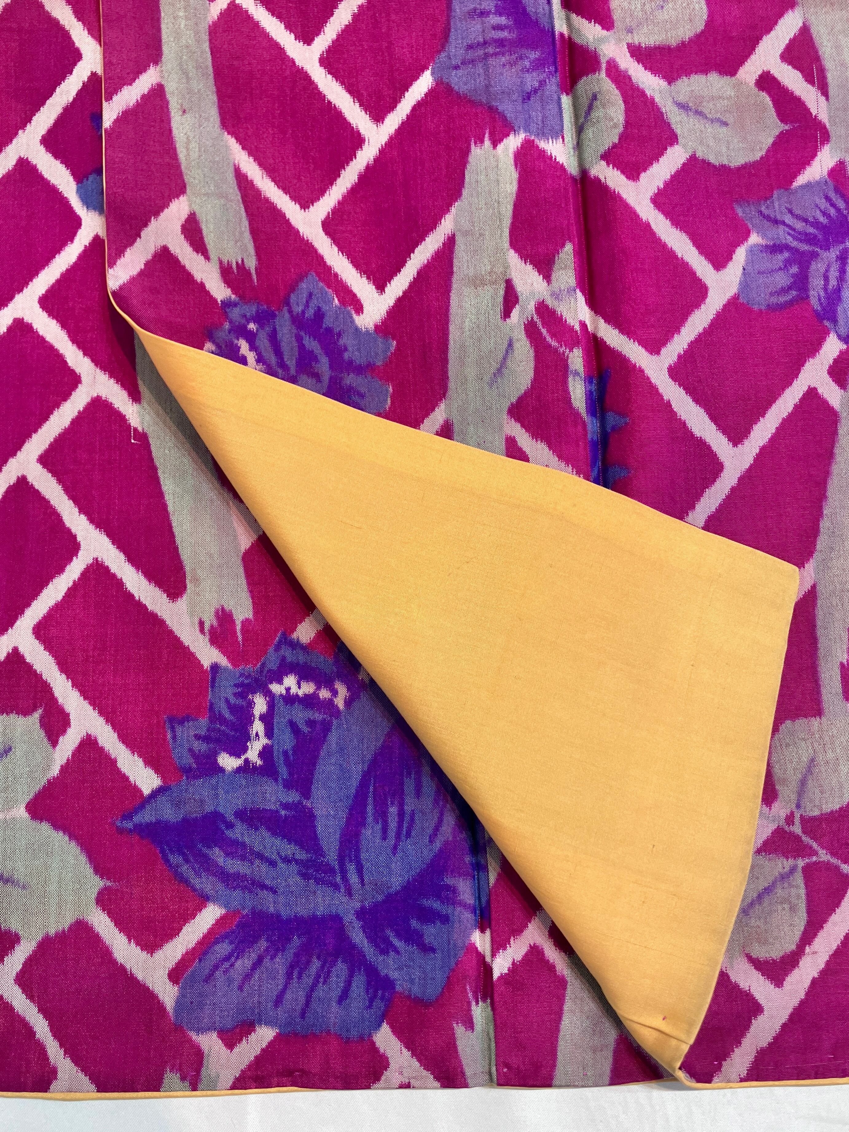 落ち着いた色味でツヤがあり、薄手でツルッとした質感が特徴の解し織銘仙です。
