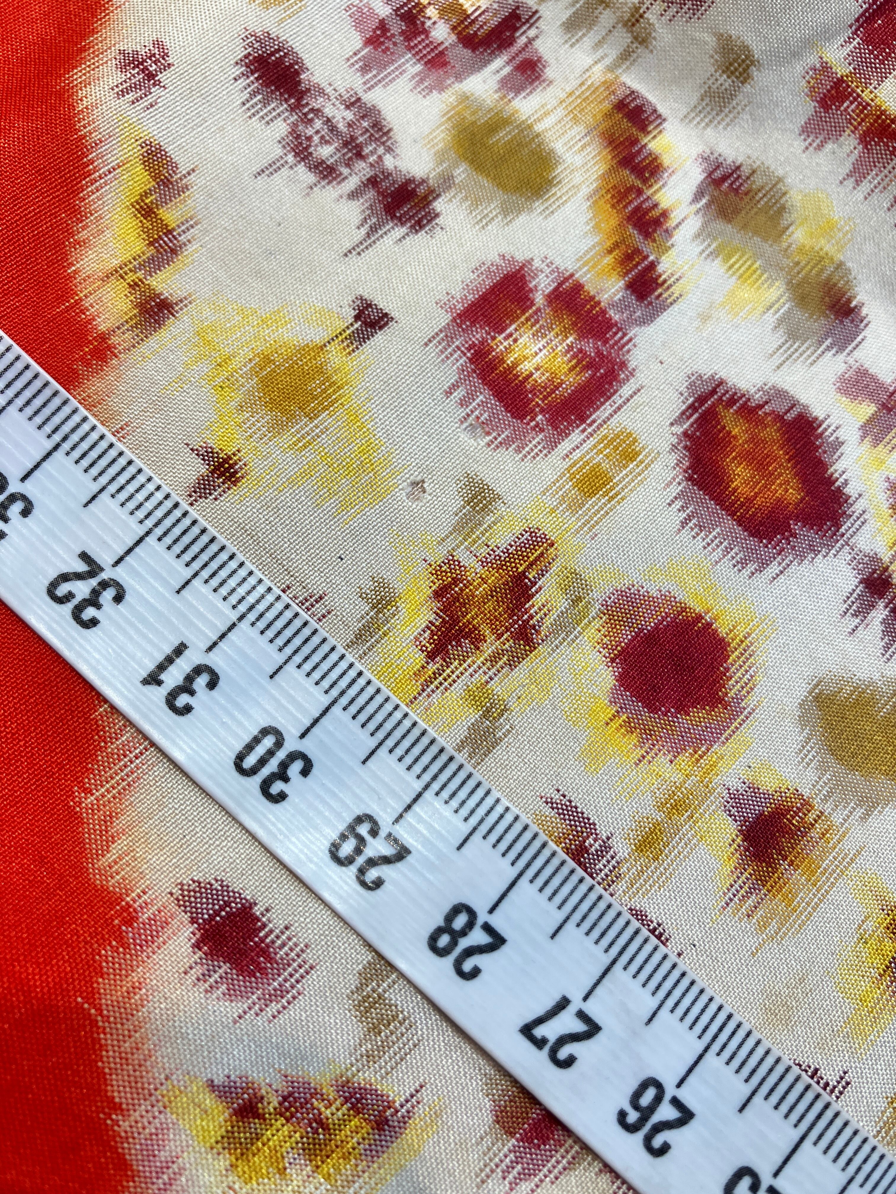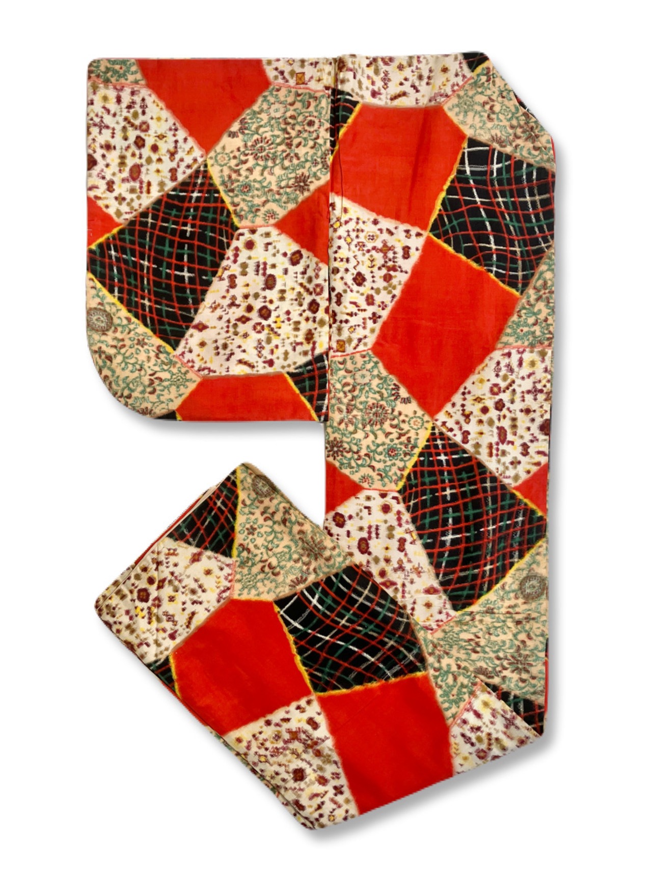 銘仙 袷 バーミリオンオレンジ パッチワーク