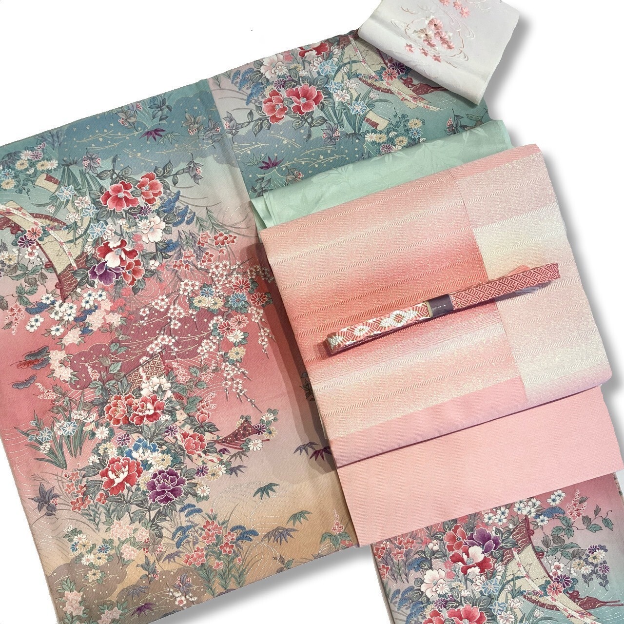 着物+帯セット(半衿+帯揚げ+帯締め付)