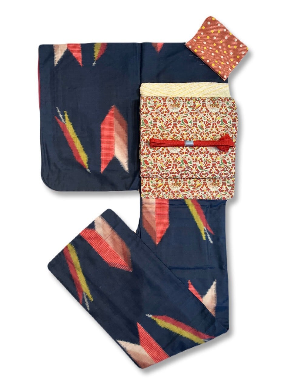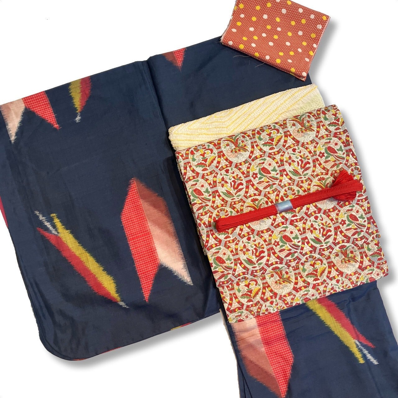 着物+帯セット(半衿+帯揚げ+帯締め付)