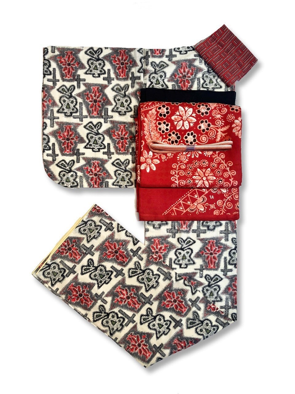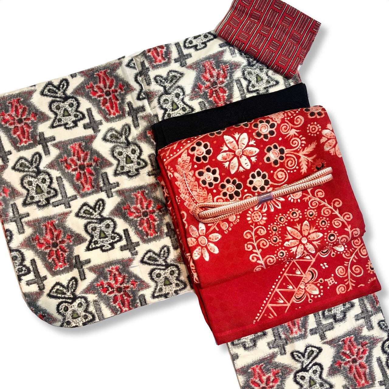 着物+帯セット(半衿+帯揚げ+帯締め付)