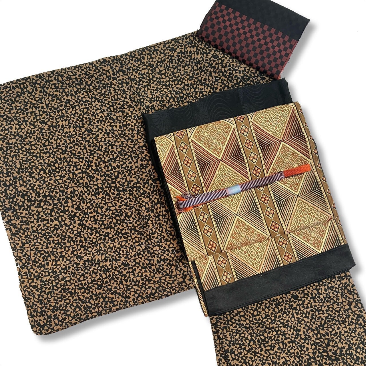 着物+帯セット(半衿+帯揚げ+帯締め付)