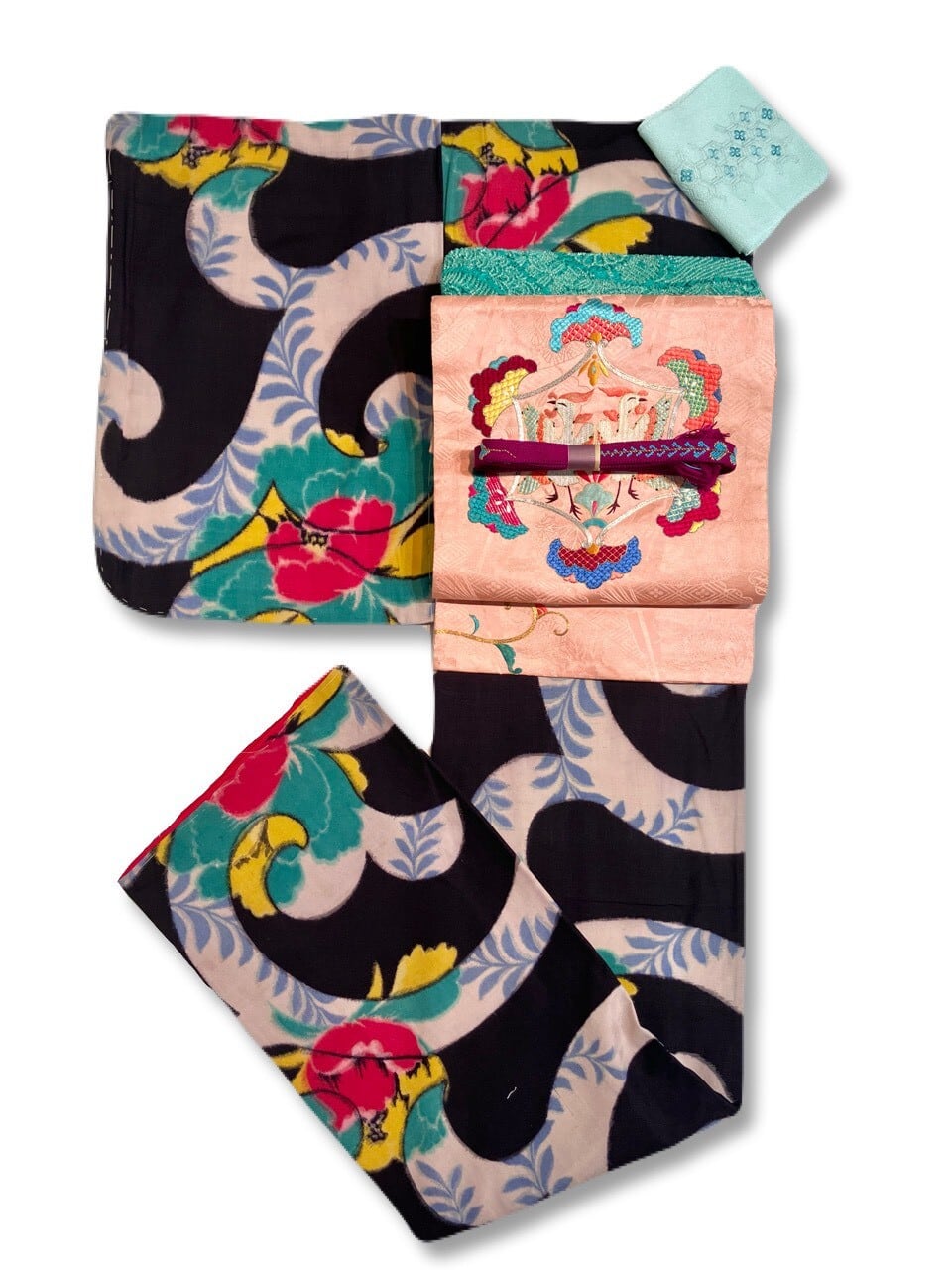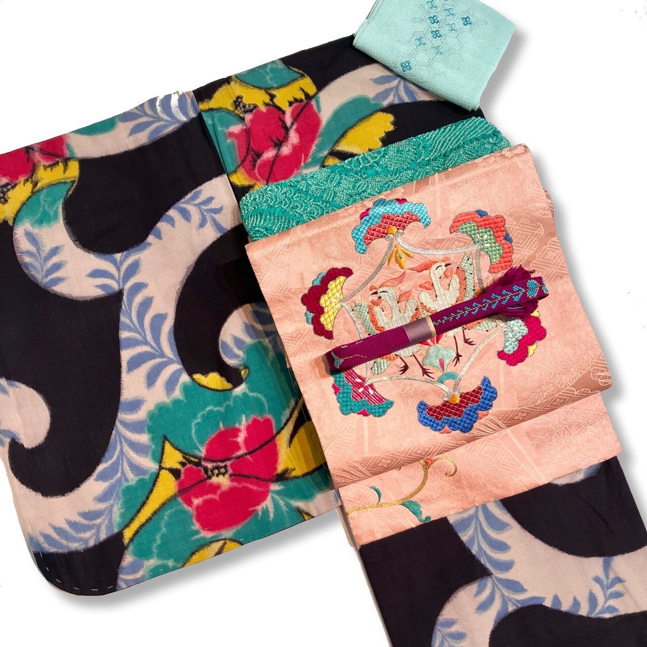 着物+帯セット(半衿+帯揚げ+帯締め付)