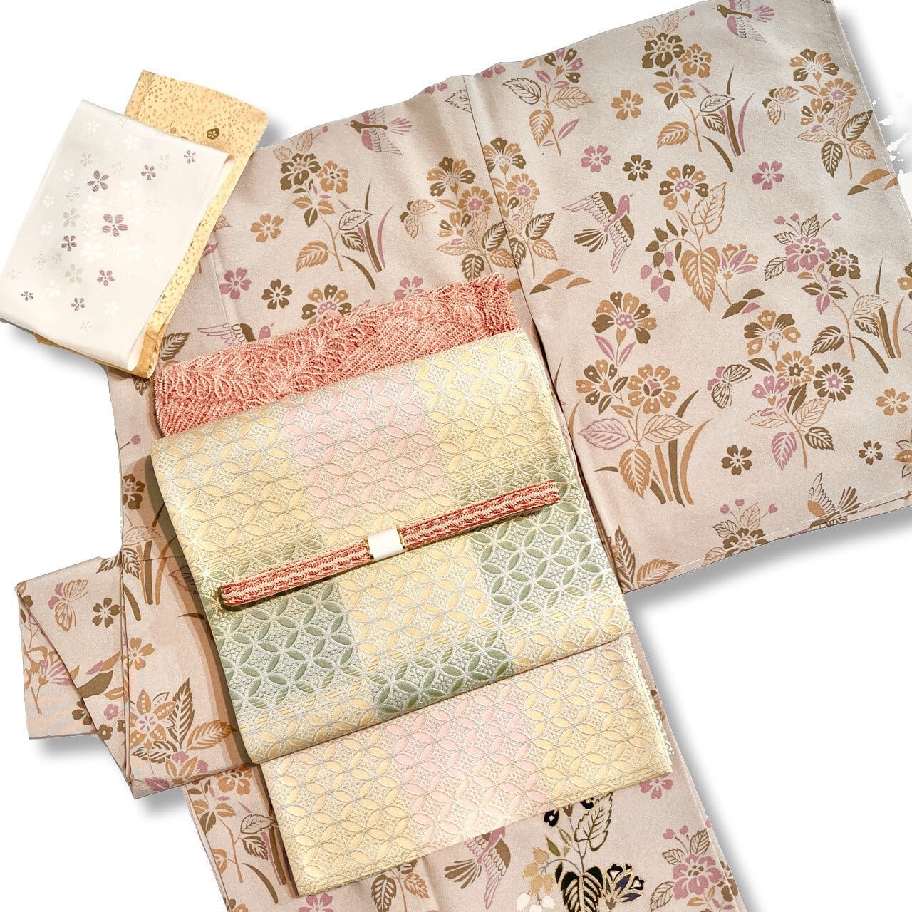 着物+帯セット(重ね衿+半衿+帯揚げ+帯締め付)