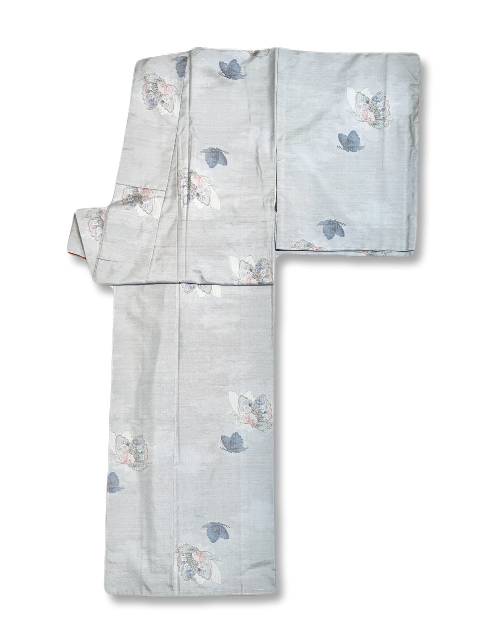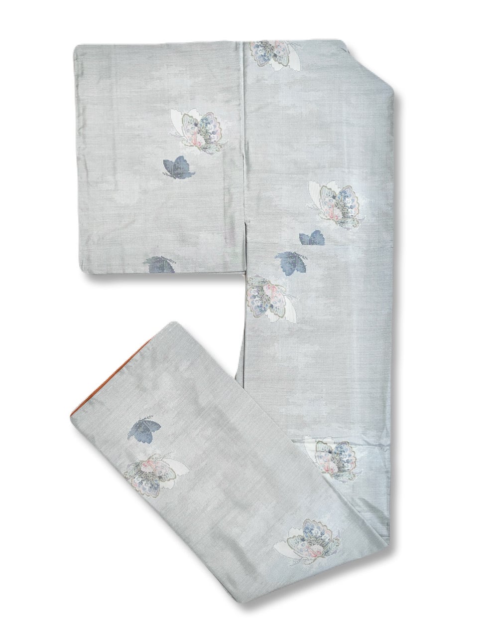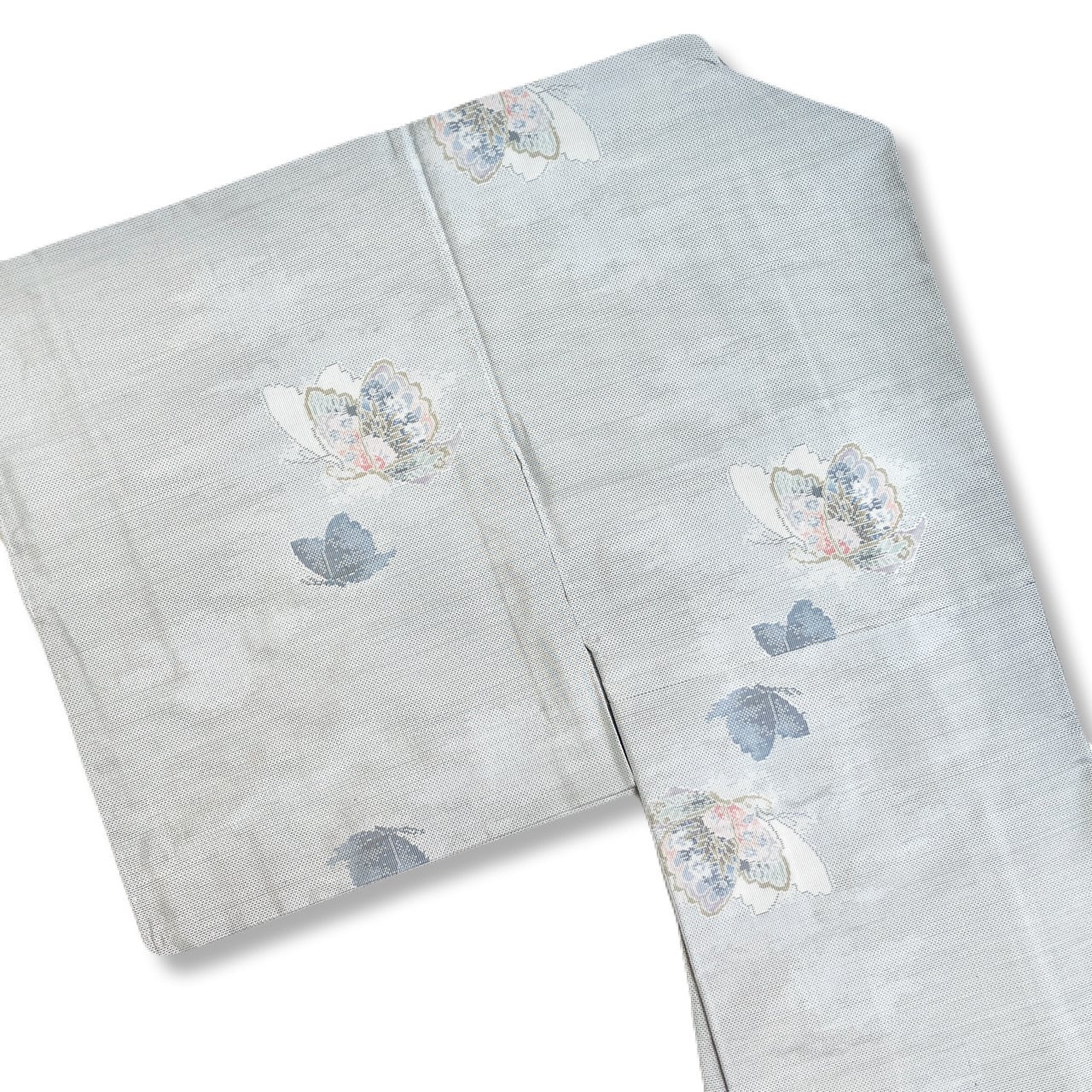 袷着物 紬 ライトグレー 蝶々