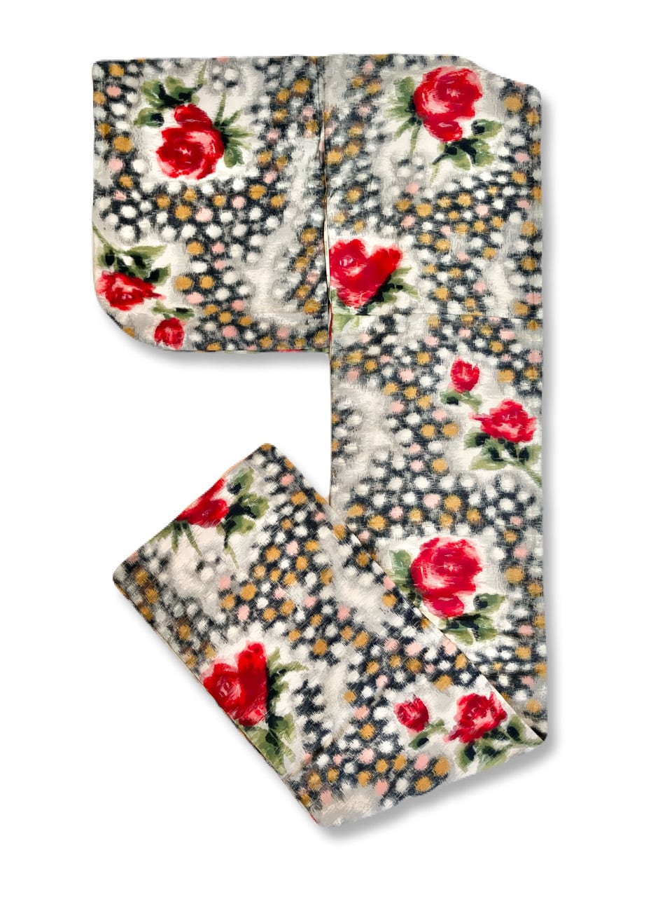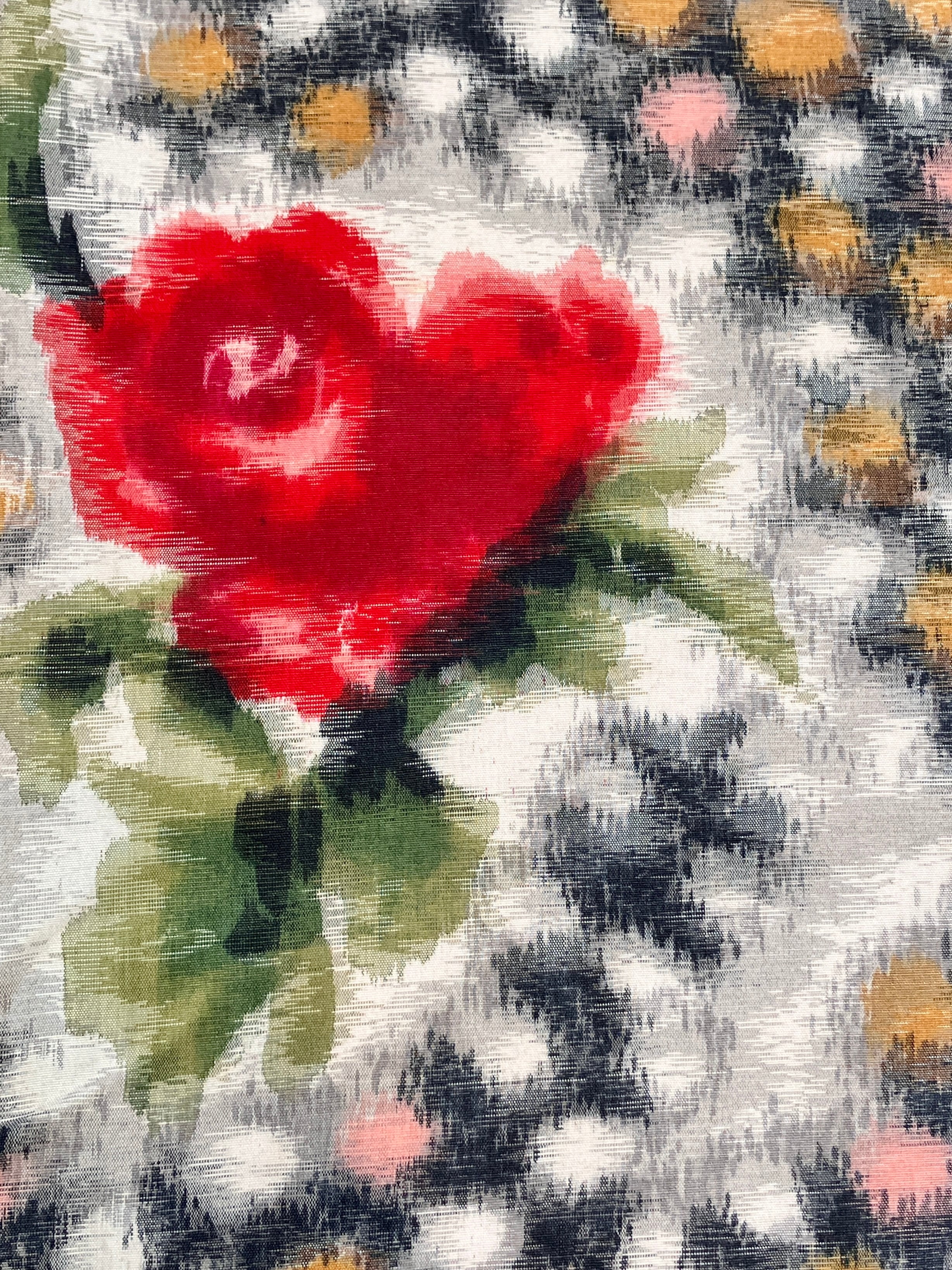 白、イエローオークル、ペールピンクのドットと赤い薔薇の花