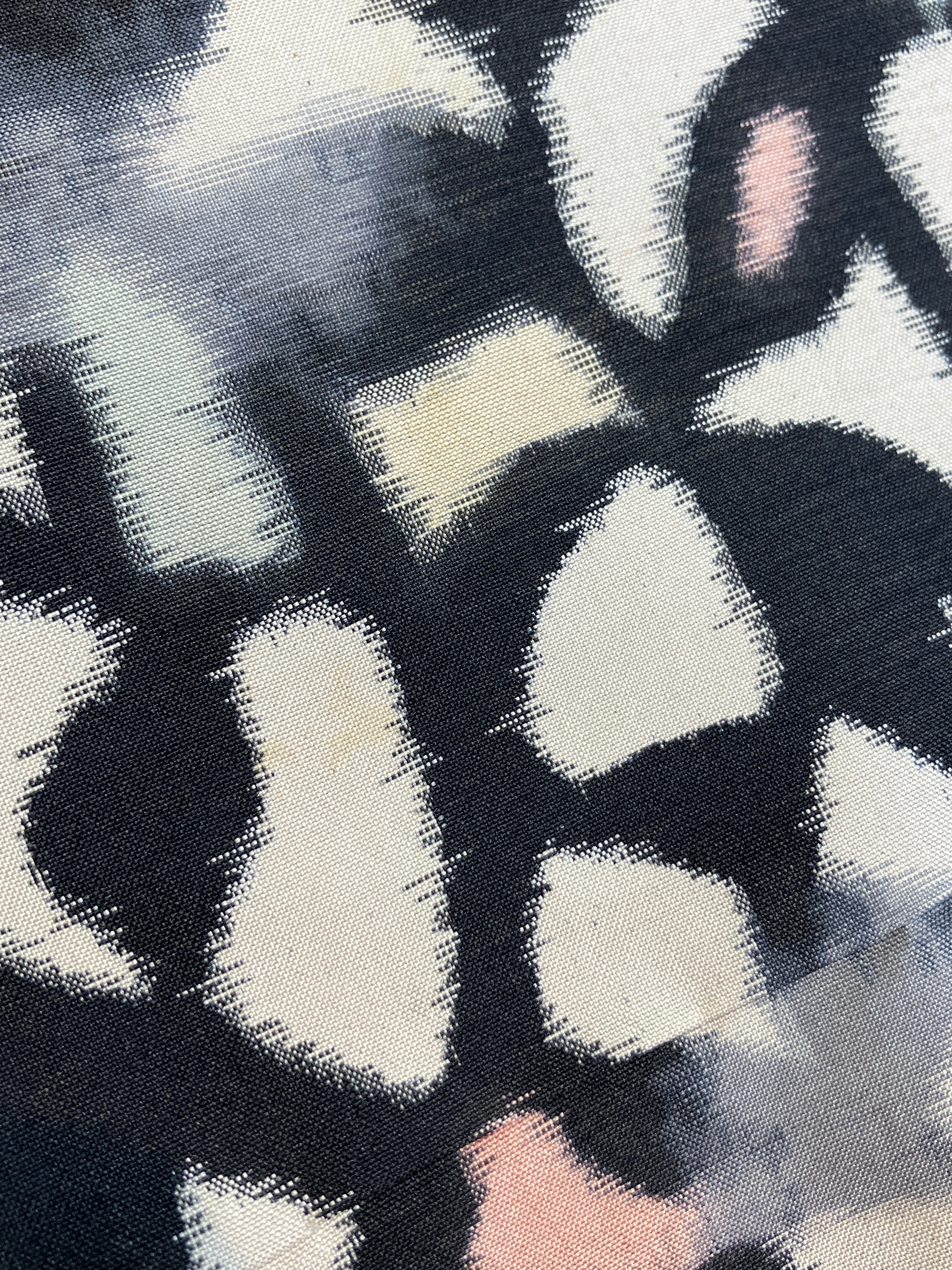 はっきりとした色味とモダンな柄、薄手ながらしっかりとしたハリが特徴の併用銘仙です。