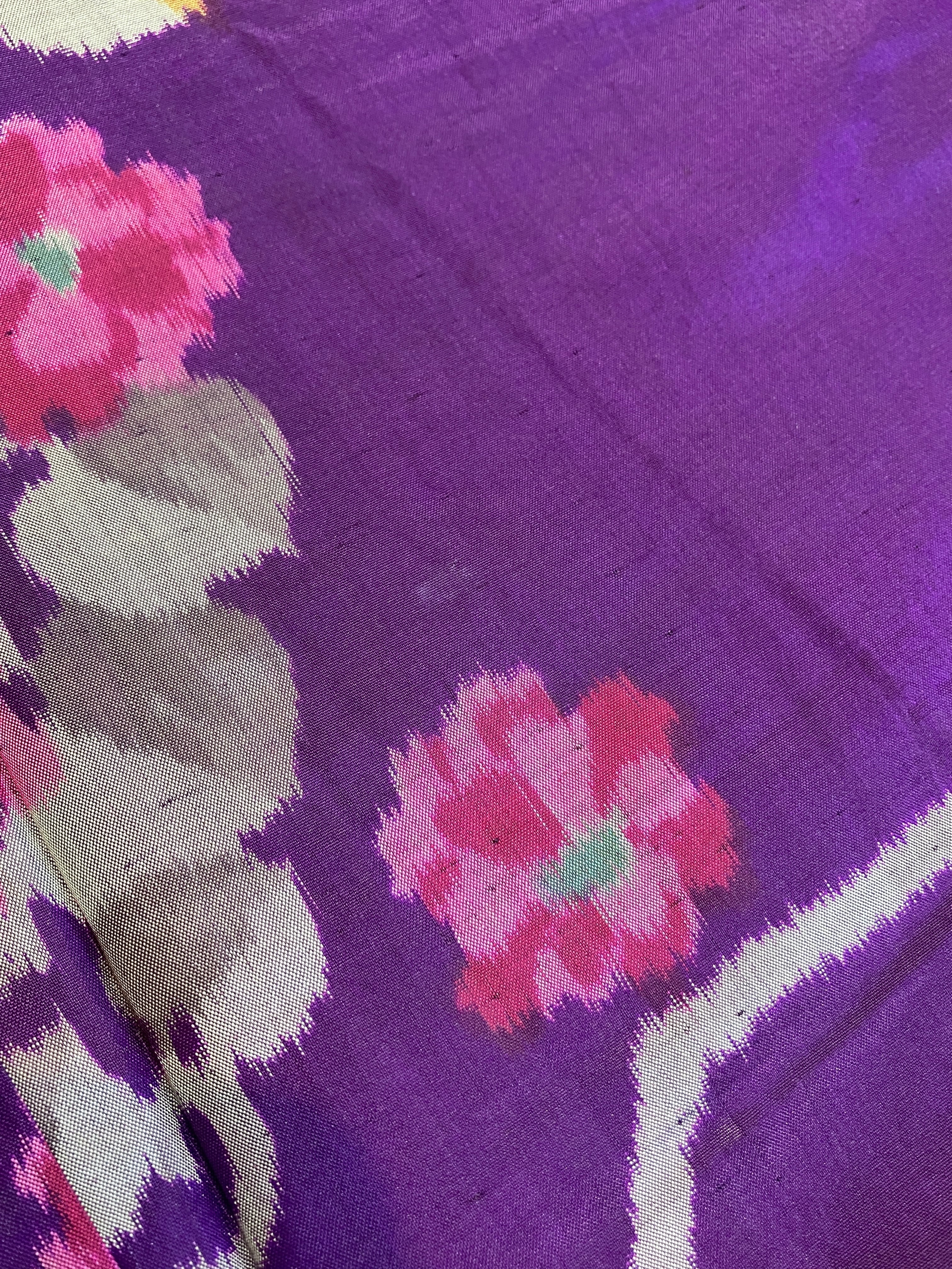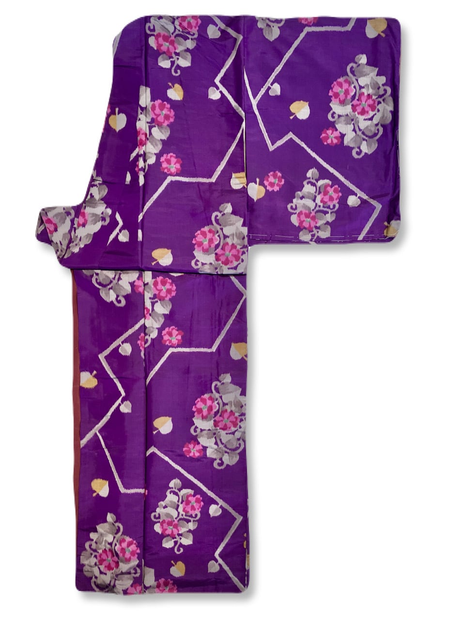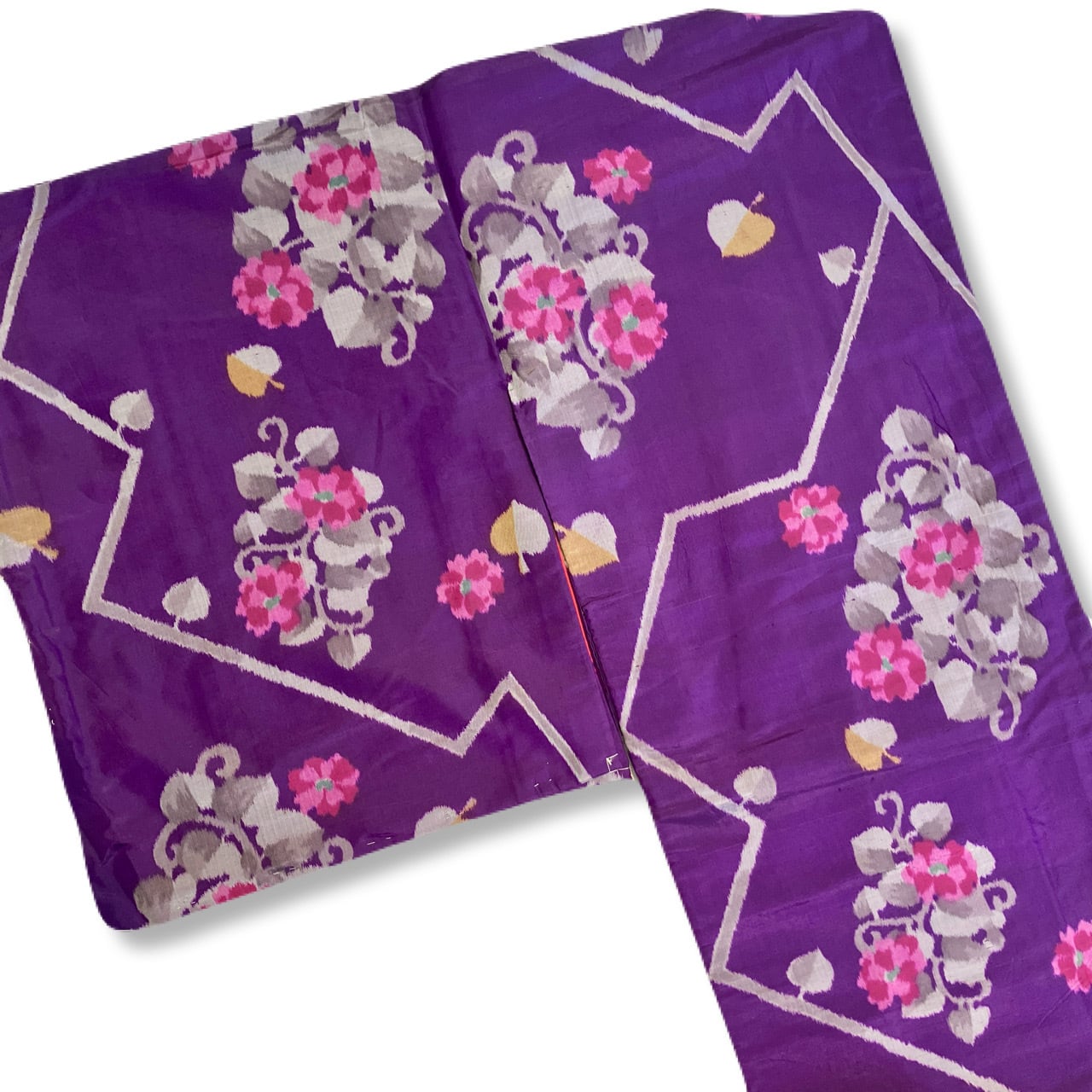 銘仙 袷 パープル ハートリーフとピンクのお花