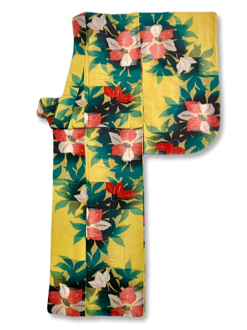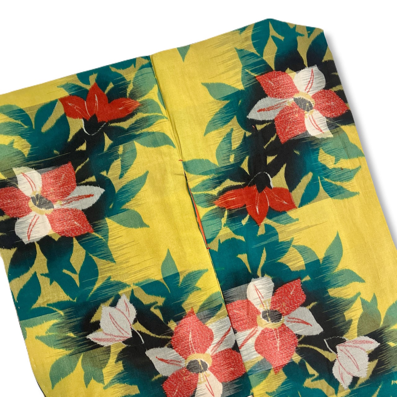銘仙 袷 黄色 紅白の不思議花