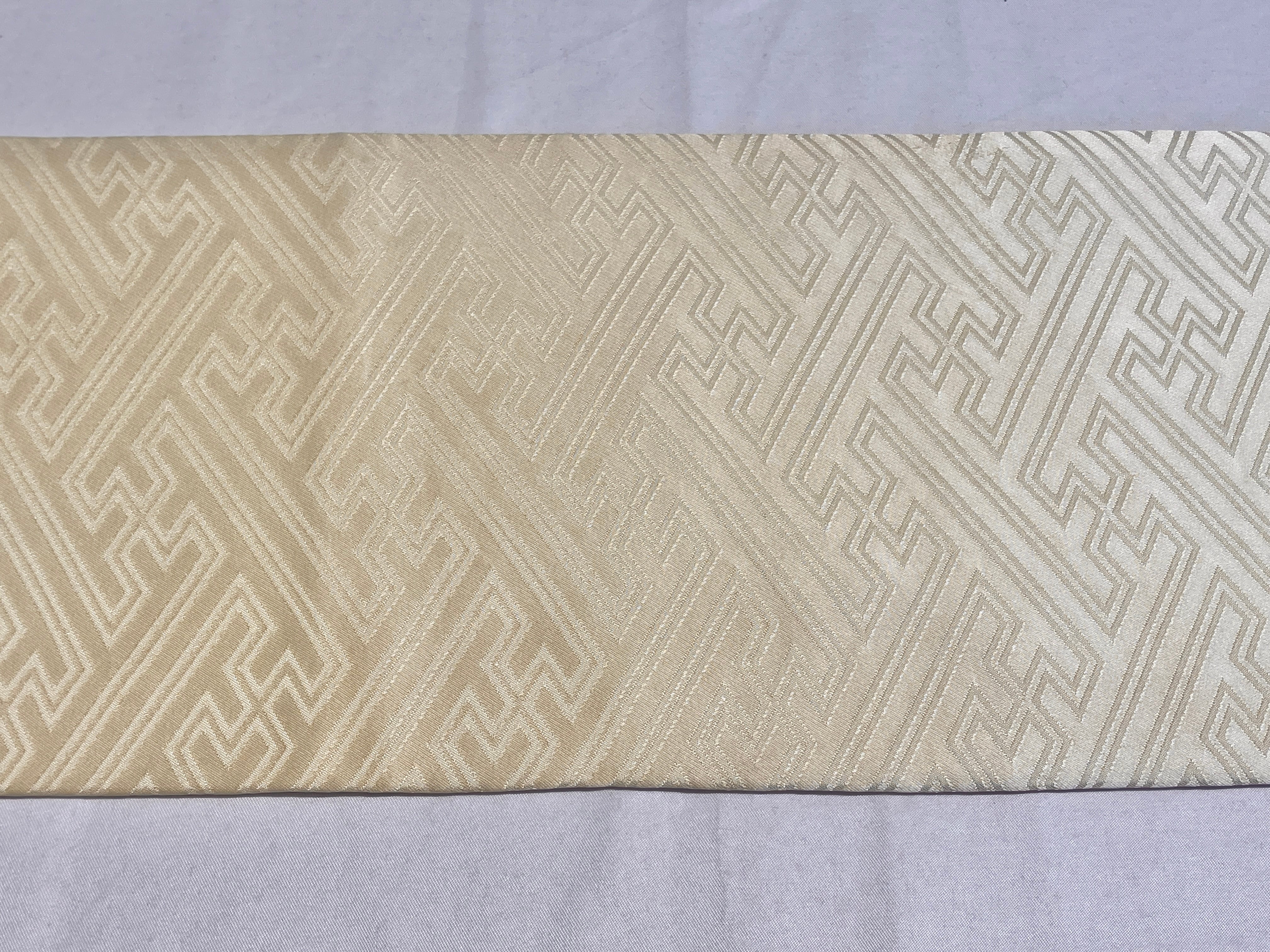 名古屋帯 クリーム 紗綾紋に菖蒲刺繍