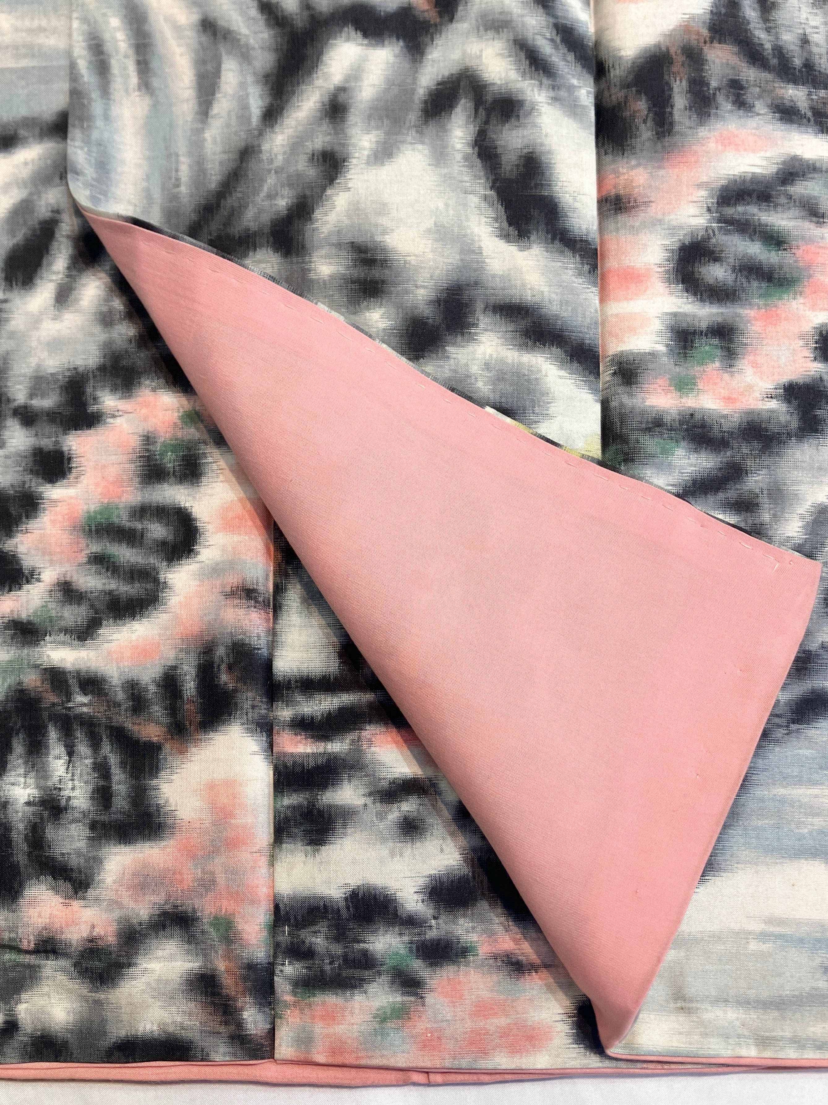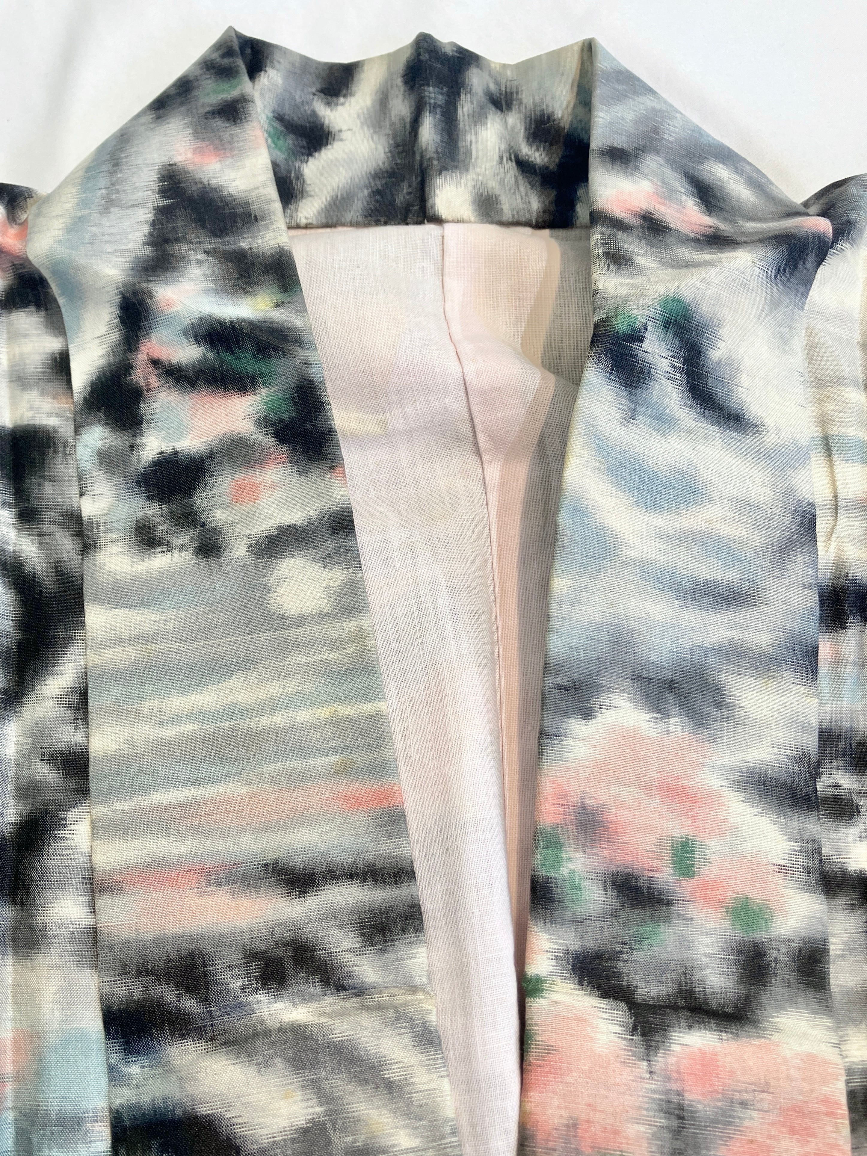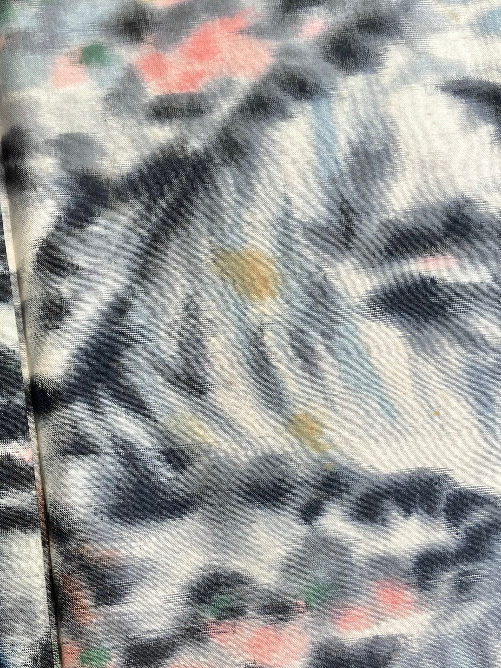 はっきりとした色味と薄手ながらしっかりとしたハリが特徴の併用銘仙です。