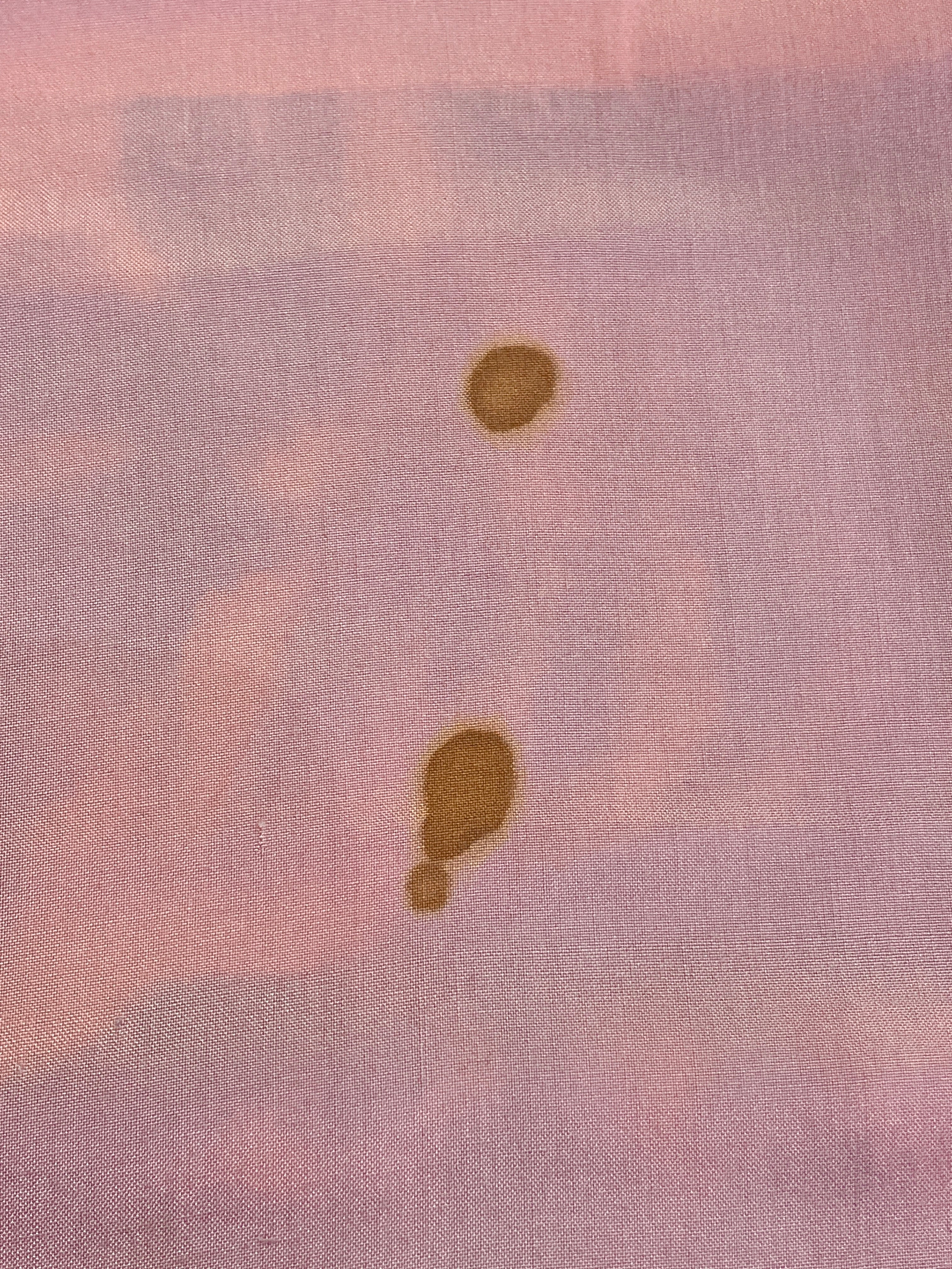 上前膝(裾から40㎝)に濃いシミあり(裏の八掛まで滲みています)