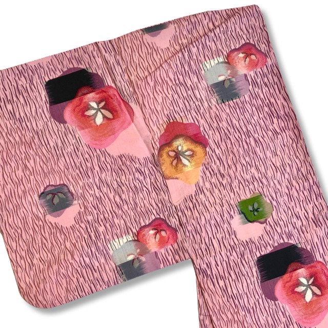 銘仙 袷 コットンキャンディピンク カラフル梅